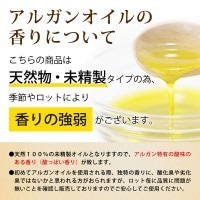 ハリウッドセレブも魅了したモロッコのゴールド。モロッコの世界遺産指定地区にしか生息しないアルガンの木は別名「生命の木」と呼ばれ、その木の実から取れるオイルは「黄金のオイル」として非常に高い価値を持っています。100kgから僅か2〜3リットルしか採取出来ない希少なオイルで神秘の高級オイルです。 アルガンオイルにはオレイン酸、リノール酸、パルチミン酸、ステアリン酸、リノレン酸などが含まれ、非常に栄養価が高く、酸化しにくいオイルになります。 何とアルガンオイルはオリーブオイルの3〜4倍ものビタミンEを含んでいます。 ●アルガンオイルを保存していると 黒い粒・赤褐色もしくは白っぽい澱(オリ)のような沈殿物が発生する場合がございます、これらは原料由来の物となりますので品質上全く問題はございません。脱臭脱色に溶剤を使用しない工程で行っておりますので澱は高品質の証であり未精製特有の栄養価が高い証拠となります。栄養分を損なわれていない新鮮なアルガンオイルをお客様のもとへお届けいたします。 ●アルガンオイルの香りに関して 天然由来100%の未精製オイルとなりますので、アルガン特有の酸味のある香り(酸っぱい香り)が致します。 初めてアルガンオイルを使用される際、独特香りに、酸化臭や劣化臭ではないかと思われる方がおられますが、ロット毎に品質に問題が無いこと確認し販売しておりますのでご安心してご使用ください。