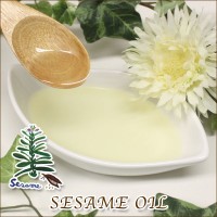 セサミオイルは、栄養素が多く、日本人がよく知っている料理用のごま油は予め炒って香りをひきだしたもので、 ゴマの実をそのまま絞れば成分は変わらず、色も薄く、香りも薄い、マッサージに最適なオイル がとれます。 マッサージ用オイルは、ゴマを焙煎せずに生のまま搾油したものです。 酸化しにくく長期保存の可能なオイル で最も優れている第一の理由は、 ビタミン・ミネラル・必須脂肪酸・必須アミノ酸などの栄養素がたっぷり含まれていることです。