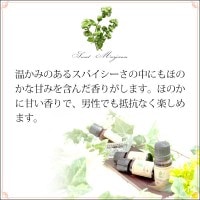 【精油の取扱い注意事項】 ◆原液のまま肌につけないでください。 ◆飲んだり、目や粘膜に触れないようにして下さい。 ◆3歳以下の乳幼児には使用しないで下さい。 ◆妊婦の方は、精油を使用する前に医師にご相談下さい。 ◆柑橘系の精油をキャリアオイル等に混ぜ使用の際は、日光にあたるとしみ等の原因となる事があります。肌への使用後6時間以上は日光にあたるのを避けて下さい。 ◆小さなお子様の手やペットの届かない冷暗所に保管し、未開封の場合は1年、開封後は半年〜1年以内にご使用ください。 ◆肌につけて利用する際はパッチテストを行ってください。 ◆酸化を防ぐため、保存は遮光瓶がお勧めです。 ◆使用する道具や容器は消毒し、手もきれいにしておきましょう。◆蓋はしっかり閉めて保管ください。◆ドロッパー/中栓は液漏れや、抜け落ちる原因となりますので、最後までしっかり押し込んでご使用ください。 ◆長期にわたって同じ精油を使い続けることは避けて下さい。 ◆精油によっては、神経系を刺激しすぎることがあります。使用量に注意してください。 ◆火気には十分ご注意してご使用ください。 ◆オイルのついた物を乾燥機に入れないでください。 ◆アロマオイルは医薬品、医薬部外品、化粧品ではありません。手作りコスメの基材や香を楽しむ目的としてお使いください。