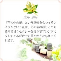 香りがかなり強いので、少量づつ使用するのがオススメです。精油の中でも最も人気のあるオイルの一つ、イランイランを是非お一ついかがですか?