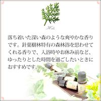 ヒバ(檜葉)とはヒノキ同様日本固有のヒノキ科の針葉常緑樹で、別名アスナロとも言われています。樹高は10m〜30mになり、北海道から九州までの広い地域に生息します。ヒバの香り成分であるヒノキチオールという成分はその名前からひのきに多い成分と思われがちですが、ひのきよりもヒバに多く含有されています。ヒノキチオール成分などにより、ヒバ材は水湿にも耐え、耐久性が高いと言われており、多くの歴史建造物にも使用され腐りにくい性質があります。ヒバはひのきと同じヒノキ科の和精油です。落ち着いた深い森の爽やかな香りで、ひのきに似た爽快感のある樹木の香りです。針葉樹林特有の森林浴を思わせてくれる香りで、入浴時やお休み前など、ゆったりとした時間を過ごしたいときにおすすめです。保管について:瓶を傾けて保管してしまいますと、中身が漏れ出てしまう場合がございます。保管の際は、必ず 直立に立てた状態で保存 をお願い致します。